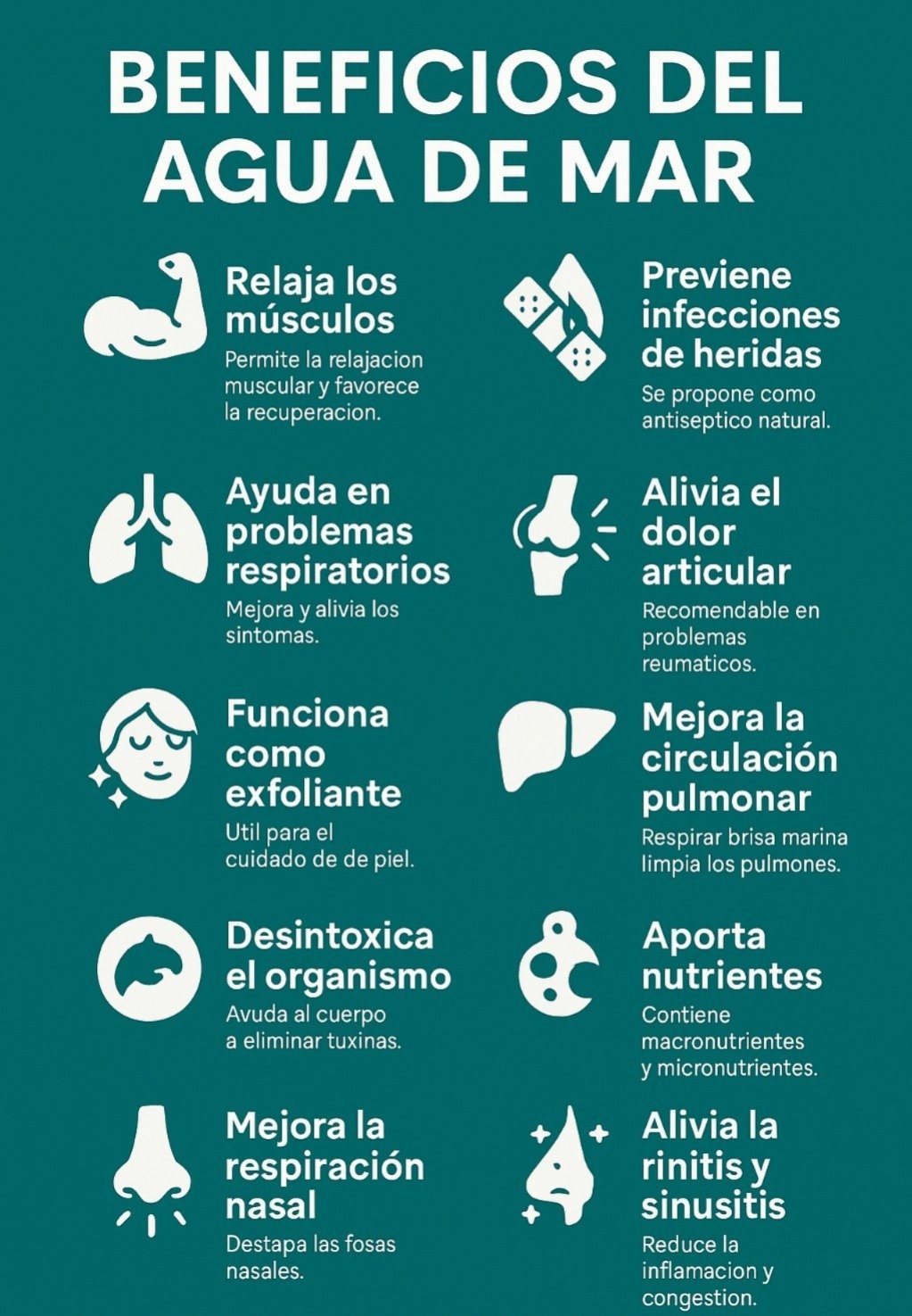 El agua de mar contiene más de 90 minerales y oligoelementos que el cuerpo necesita. Estos minerales ayudan a restaurar el equilibrio electrolítico, mejorar la función enzimática y fortalecer la mucosa intestinal.